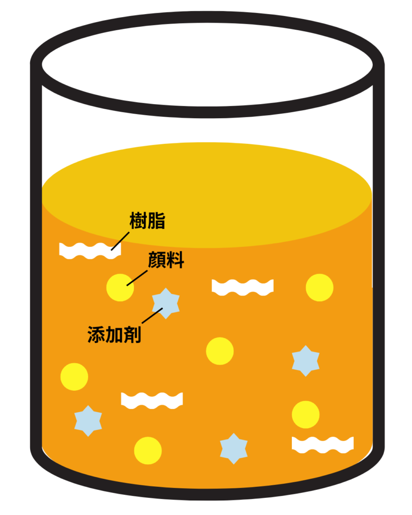 - 樹脂:塗膜の骨組みとなる成分