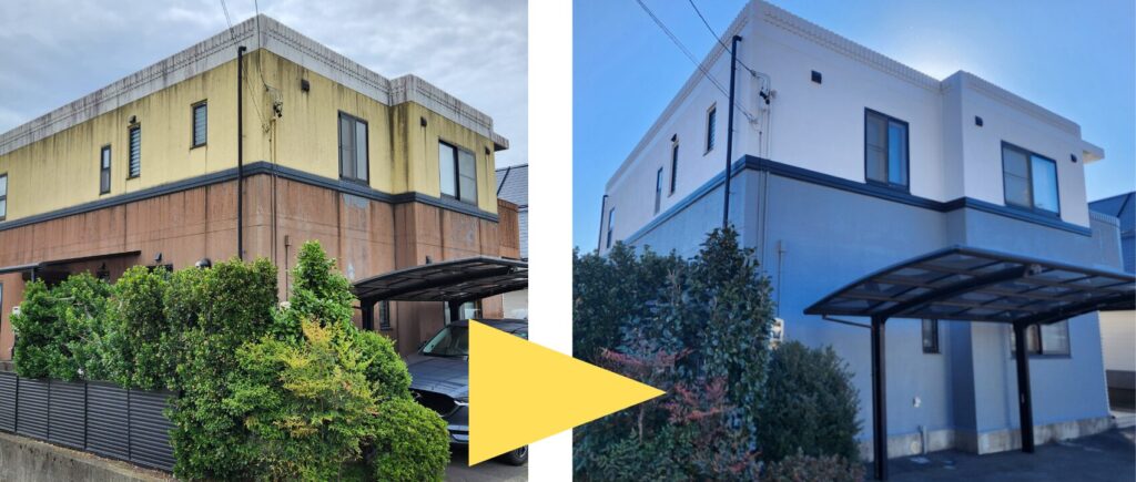 特に築5年を過ぎたころから、外壁の色あせや雨だれ汚れなどの違いが見えてくることがあります。