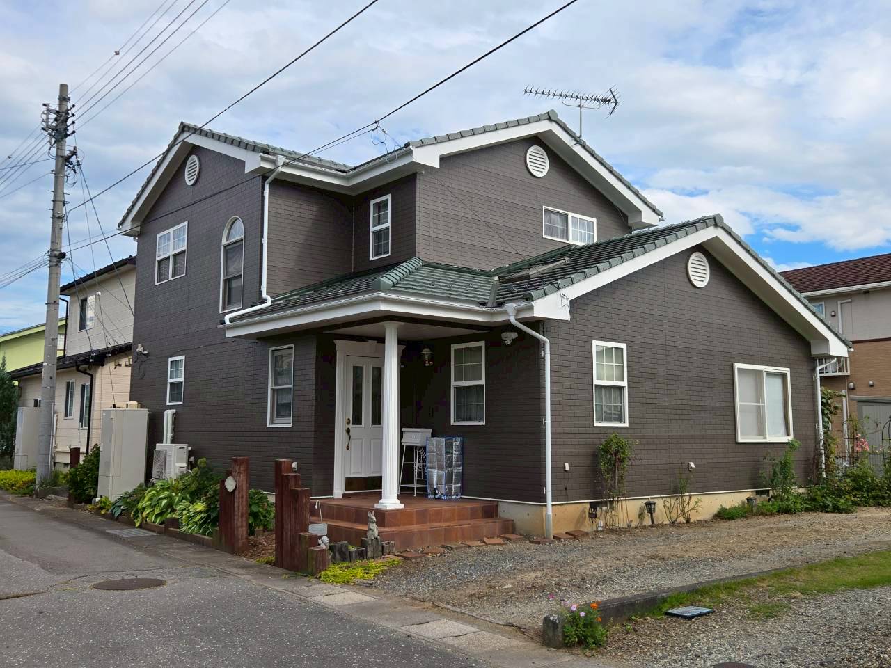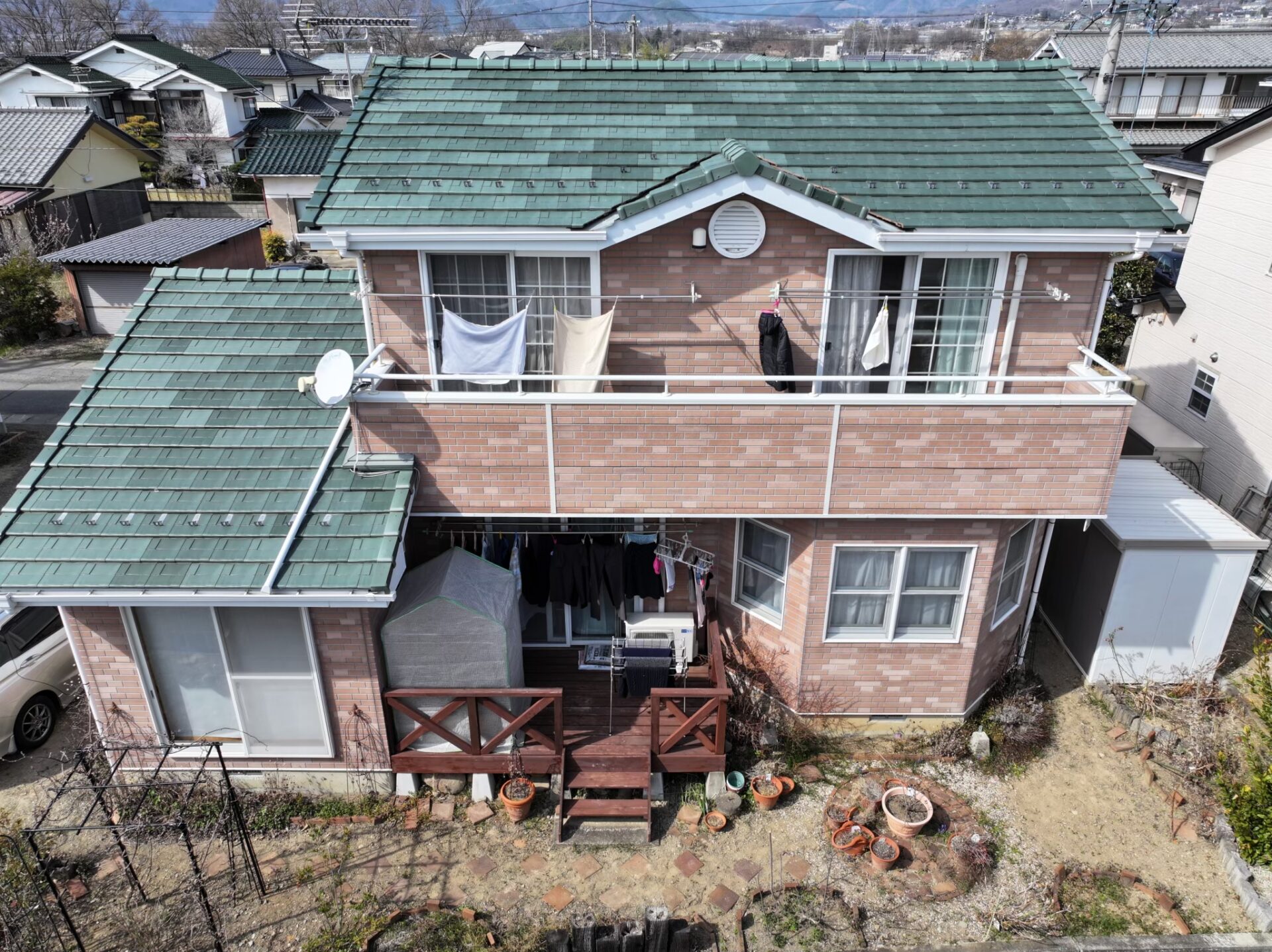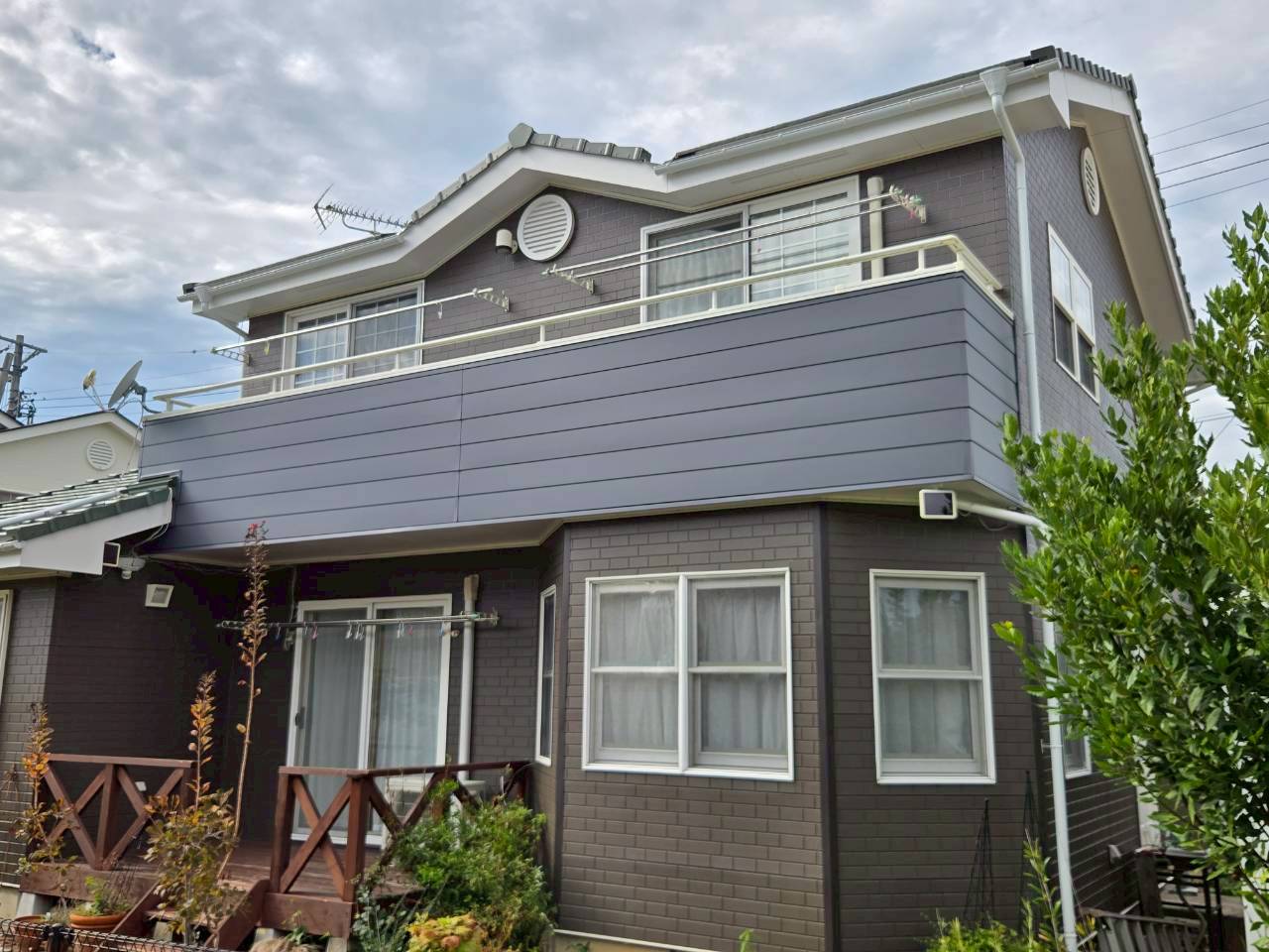 長野県上田市 S様邸 外壁塗装させていただきました 2025.12.12 最終更新日時 : 2025.12.12 sinsyu_dev 施工前 施工後 塗装概要 地域長野県上田市工事内容外壁塗装(サイディングボード)、ベランダ外壁板金工事使用材料メーカー外壁:エスケー化研(茶系)築年数26年工事開始時期8月 施工前の写真 施工後の写真 施工中の写真